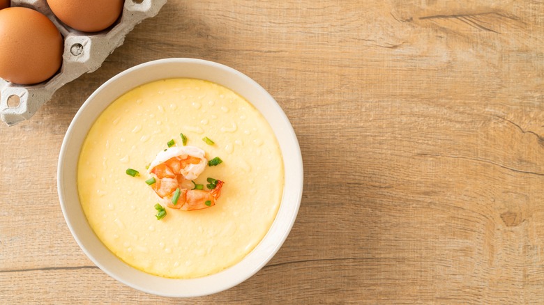 In an exclusive interview, Martha Stewart revealed that one of her favorite ways to eat eggs is to steam them. To make these eggs, she places the eggs in a rack over a covered pan and brings the water to a boil. Depending on what kind of egg she wants, she recommends leaving the eggs over the steam for between three and five minutes. She notes that these eggs are not only silky smooth and delectable, but they also peel super easily. Her go-to soft egg has a set and sturdy white with a yolk that is "beautiful, gold, and runny."