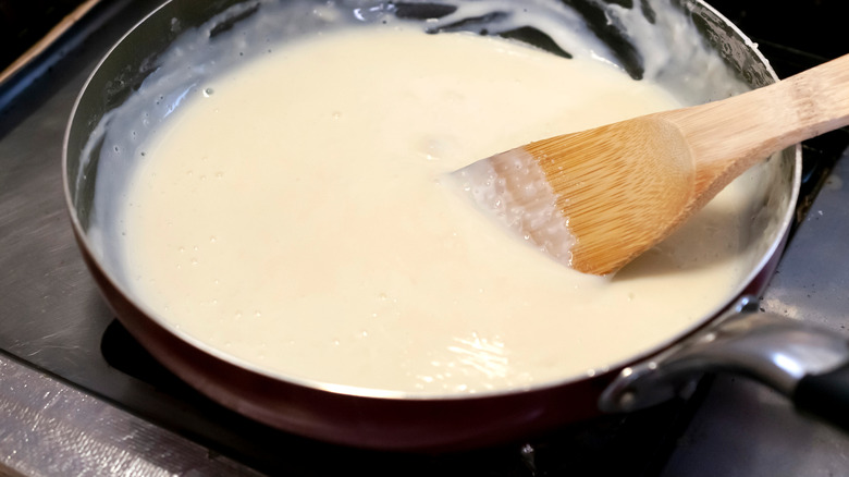 Macaroni and cheese doesn't have to be just melted cheese and pasta — it can be made even more decadent with the addition of another creamy ingredient. To avoid mealy macaroni and cheese, Martha Stewart recommends making a béchamel sauce to add to your pasta and cheese. Béchamel is considered one of the four mother sauces and is made by cooking a roux (flour and butter) with warm milk until thick and creamy. While this extra step may require extra time, it does add more creaminess to the macaroni and cheese and makes it all the more memorable.
