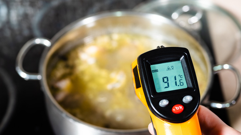 Martha Stewart thinks the answer to that question is a definitive "no." She notes that if you boil stock rather than allow it to simmer, it will result in a cloudy stock. On a molecular level, increasing the heat of the stock will cause the flavor molecules to move around faster. That means the bone fat will quickly be bombarded with the fast molecules and cause the fat to emulsify into your stock. If you aren't a fan of waiting, you might as well just buy stock from the store.