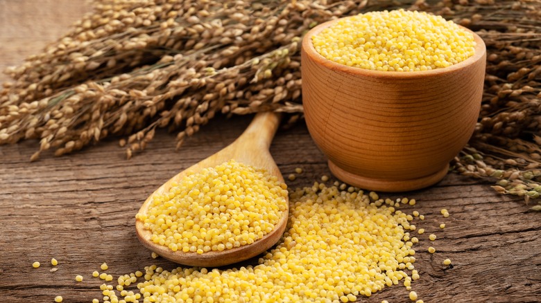 Millet isn't the first side dish most people think about when looking to accompany their dinner entrées or morning breakfasts. In fact, it's more widely known as an ingredient in bird feed. But millet is much more than something to spread in the backyard for your avian friends. Though technically a seed, millet is considered one of the ancient grains, and is grown in parts of Asia and Africa, according to Healthline. It's a sustainable plant that grows easily and is pest and drought resistant, but that's not the only reason it makes a great alternative to rice or polenta. It's also a nutrient powerhouse, and stores well in your pantry or cupboard.