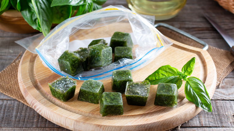 Similarly, consider using ice cube trays for smaller portion dishes, soup starters, herbs, or tomato paste. For herbs, freeze them with a liquid like water, vegetable broth, or olive oil.