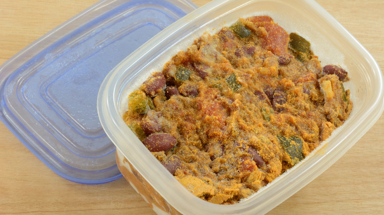 While you may be tempted to throw that leftover lasagna or cream of mushroom soup in some flimsy Tupperware and shove it in the back of the freezer, it's best to take a few safety precautions. In addition, it's important that your food continues to appear desirable to you and keeps the incredible flavor you worked so hard to create. If you're being honest with yourself, how often have you thrown out frozen leftovers just because they looked a little iffy or were crusted with ice crystals? How many times did you throw out unidentifiable frozen mystery food? Waste no more! Let's talk about the biggest mistakes you're making when freezing leftovers so we can avoid them altogether.