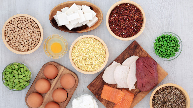 One simple swap you can make is to use plant-based protein powder instead of whey protein powder. Some of the most widespread options on the market for powders include hemp protein, pea protein, brown rice protein, and soy protein. Commercial plant-based protein powder mixes are usually a combination of these powders (via Healthline) — this helps ensure that the plant-based protein contains all of the necessary amino acids needed to form proteins. The protein content in whey and plant-based powders is around 20 to 30 grams per serving, meaning that you won't miss out on a satisfying post-workout recovery.