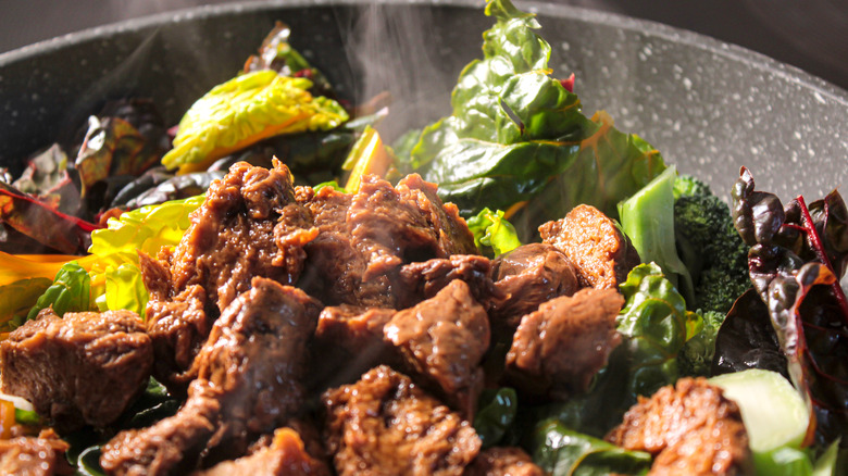 Many vegan recipes are veg-forward — including stir fry and curry. Instead of using chicken or beef in your stir-fry recipe, you can make a quick substitution with a vegan protein. There are numerous types of vegan proteins available, some of which are better in certain applications than others. Tofu is one of the most widely available proteins but can have a custard-like consistency that may not appeal to certain palates. Seitan, also known as "wheat meat," is made with vital wheat gluten and resembles the same chewiness of beef with a flavor that can be altered by ingredients, sauces, and purees. If you're looking for a grainy texture with a hefty dose of prebiotic fiber, you may consider adding tempeh to a stir-fry recipe.