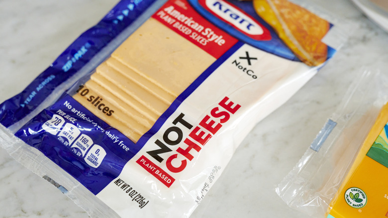 You should add vegan cheese to your list of plant-based products that have come a long way since first being developed. You can purchase vegan cheese in numerous forms, including cream cheese spreads, shreds, snacking cheese, or slices. Some of our favorite brands of vegan cheese include Treeline Cheese. The brand offers numerous artisanal kinds of cheese, including soft-French style cheese, "goat" cheese, and bloomy rind cashew cheese. We found their cream cheese to be just as flavorful as dairy-based cream cheese; it has the same tang with an unctuous, spreadable quality. If you're throwing a party, we recommend adding a container of dairy-free garlic and herbs Boursin cheese spread to your grocery list. This cheese is the perfect blend of salty, savory, and creamy.
