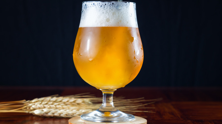 Thanks to its scent-enhancing design, the tulip glass amplifies the flavor of beers with intense aromas, like malt and hops (via Shore Craft Beer). A hoppy beer denotes a pleasantly bitter-tasting brew, like double IPAs and other pale ales that use plenty of hops to make their beer. According to Rolling Hops, malty beers describe a toasted or smokey flavor often found in barley wines, stouts, and porters. Also known as Belgian glass, the tulip glass will work for many Belgian classics, from saisons to Flemish reds.