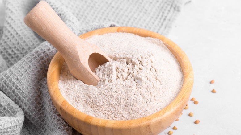 Type 1 flour is a coarser grain flour that's an unconventional choice for pizza dough. However, using it will add more flavor to your pizza crust. The flour is made with a stone milling process that doesn't remove any part of the whole wheat grain. this gives the flower a higher quantity of bran and wheat germ, which provided added nutrients and flavor (via Via Italia). Because of this coarser, whole grain composition, Type 1 flour gives pizza crust more rustic earthy flavors than 00 flour.