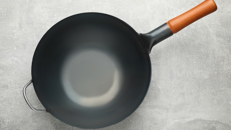 The wok can indeed be used to smoke food, according to Serious Eats. But before you start to prepare that chuck roast, think a little smaller. Serious Eats suggests using the wok for smoking items like cheese, chicken wings, and fish. To smoke food in a wok, all you need is aluminum foil and smoking elements. First, line the wok with foil, then set a rack in the wok that the food will be placed on. Pour some smoking elements on the foil and then place the wok on a burner before covering entirely in foil once the smoke starts to form. Per Serious Eats, the smoke gets trapped inside the foil, and the food gets a smokey flavor. If you have a wok with a lid, make sure there is room for the air to flow between the lid and the food, per Atlas Obscura.