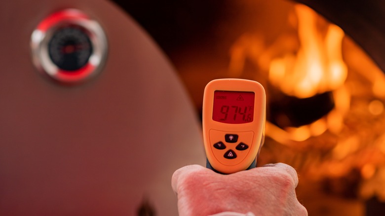 Infrared thermometers are a good kitchen tool to have handy whether you make homemade pizza often or not. The device, which is also sold as a temperature gun or a laser thermometer, reads temperature from a distance. The thermometer will only measure the surface temperature of your pizza oven or stone — not the ambient temperature around it.