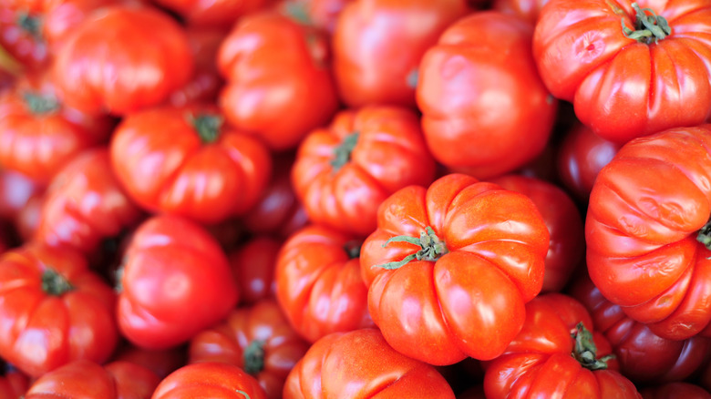 Beefsteak tomatoes, according to Kitchn, are just the ticket in this case, and Giada De Laurentiis agrees. With a generous size that can hold a good amount of filling and a sturdy exterior that won't slump too much once cooked, they're an excellent choice for stuffing with your favorite flavorings and then baking or grilling, per Kitch. When you scoop out the interior, the outlet notes, don't toss that pulp; You can use it in gazpacho, a bloody Mary, or simply heap it atop some toasted, garlic-rubbed bread for a quick side dish of Spanish pan con tomate.