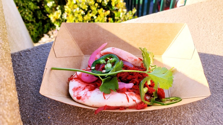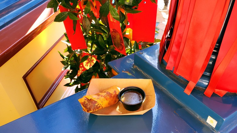 Because the egg roll resembles gold bars, they're often consumed during the new year celebration as a representation of wealth and prosperity, according to The Christian Science Monitor. Since the Lunar New Year is celebrated in several Asian countries from China to Vietnam, the food Imagineers at Disney took the egg roll and turned it on its head. There's no cabbage or mushrooms inside that crispy shell. Instead, there's beef birria and Oaxaca cheese that's then rolled in a wonton wrapper and deep-fried, thereby turning it into something closer to a deep-fried Philly cheesesteak.
