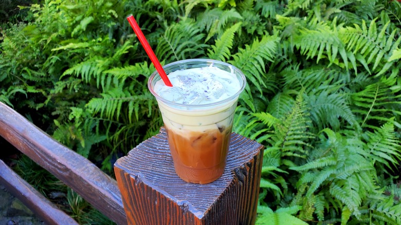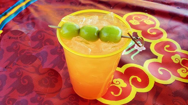 Red, yellow, and gold are everywhere when you enter California Adventure because those are the colors of the Lunar New Year. So, it makes sense that some of the food and drinks share those colors. While this tea from Longevity Noodle Co. isn't exactly that bright red that symbolizes luck and good fortune for the Lunar New Year, it is definitely eye-catching. A beautiful rosy pink, this non-alcoholic option is almost too pretty to drink — almost. After staring at it for a few minutes, we finally took a sip and were thrilled with the flavor.