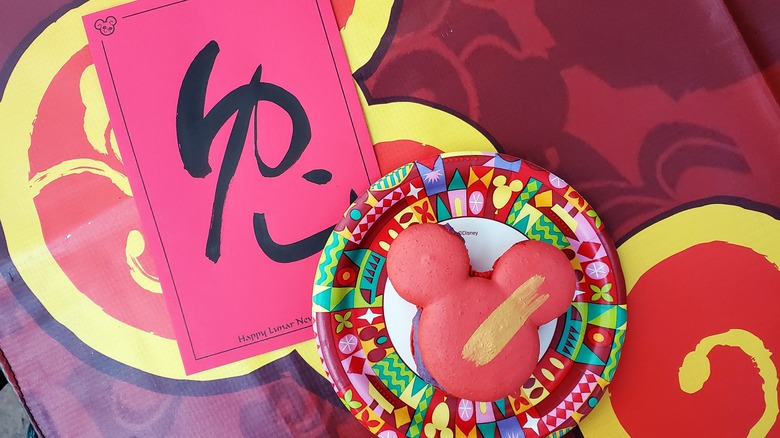 You'll find a bright red Mickey-Mouse-shaped cookie streaked with gold. This cookie, available at Bamboo Blessings, is all about the Lunar New Year: The red symbolizes happiness and passion, according to Top China Travel, while the gold (not surprisingly) represents prosperity and good fortune. It's so stunning we didn't want to eat it. But, we finally gave in and tasted one of the ears. As expected, this cookie was pure pleasure!