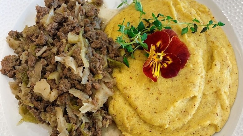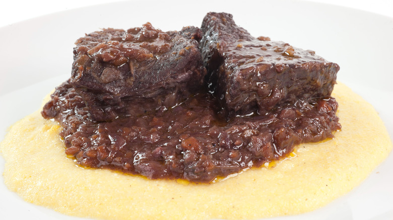 On a nutritional level, in comparison to other meats, donkey may be a healthier option as it contains more amino acids and protein. It has less fat, cholesterol, and calories than cuts from other animals, per WebMD, all while maintaining a similar taste profile to other red meats. Another health benefit of tapulone is that slow-cooked meats also may be healthier than grilled or broiled meats, according to Food & Nutrition, since this cooking process "can help reduce the number of cell-damaging compounds." Considering that tapulone is usually served with polenta, a grain that is low in calories but high in carbs (via Healthline), it means that all-around, this dish is fairly healthy.