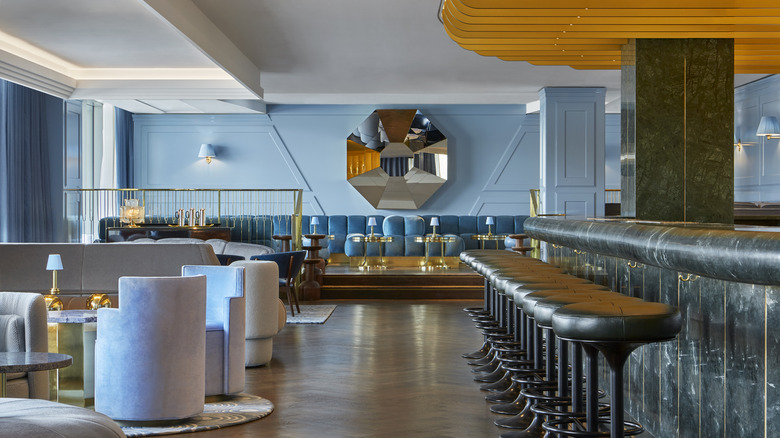 Designed by Jacu Strauss of the Lore Studio design team, notes Azure, the atmosphere of Lyaness is a nod to retro style and a glamorous era, with patterns of cool blue and a green marble bar providing an energetic backdrop for bartenders to serve drinks into the late — or early — hours. Located in London's Sea Containers hotel, the bar offers views of the Thames, so if you're able to look away from your specialty cocktails and plates of food, you'll have a picturesque scene to enjoy.