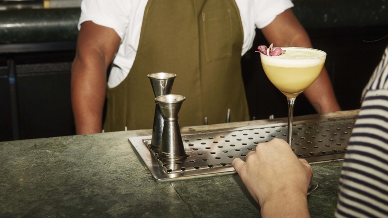Lyaness, Ryan Chetiyawardana's flagship bar, is committed to introducing flavors and ingredients to customers' palates through special presentations and interesting cocktails (per its website). The menu at Lyaness looks like a creative manifesto. It is called the Ancestral Cookbook and presents a unique take on traditional line menus. Cocktails are divided into categories such as "Nature vs. Nurture," "Taught history," and "Ceremony," and ingredients like "everything vinegar," "thunder mushroom," and "death bitters" flavor the drinks. Cocktails are made with five key ingredients, and an illustrated graph with "light-er" and "rich-er" on the vertical axis and "day" and "night" on the horizontal plane helps visitors decide. For instance, if the night is young and you're craving something rich, order the Rapoport Cocktail. The cocktail is made with tree caramel, gin, microorganisms, nuked vermouth (a Chetiyawardana special), and The Plum, I Suppose, a spirit The Whisky Exchange says includes notes of toasted almonds, marzipan, and flowers.