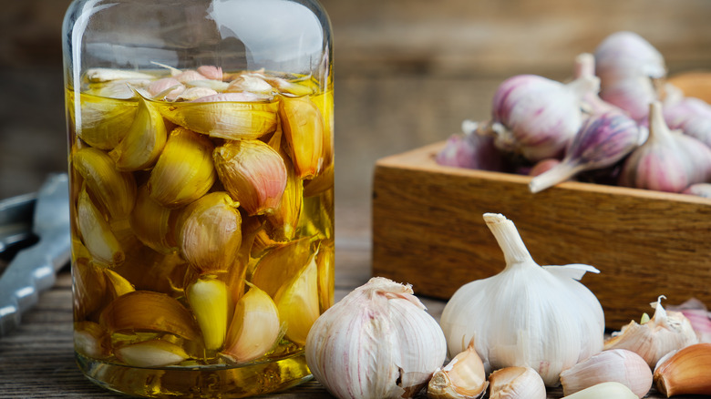There are several methods to infuse olive oil at home. Simmer your oil and aromatics on a stove for up to 15 minutes — just be sure not to let the oil boil to disrupt the flavor of the infusion. Once the oil is completely cooled, you can strain it and store it in an airtight container. Alternatively, you can leave your fresh herbs and oil in a bottle in the fridge for about a week. For herb-infused olive oil, you should leave it in a cool, dry place for about a month. If you use fresh herbs to infuse your olive oil, you should use the infusion within a week.