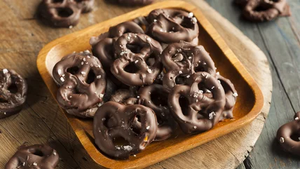 If you are going to add some sweet or savory garnishes to your chocolate-covered pretzels, Kitchn recommends working in batches of 10 so the chocolate doesn't harden before all those delicious add-ons can adhere to the pretzel.