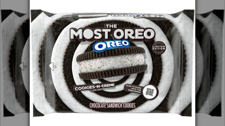 Oreo is no stranger to imaginative flavors, such as Chocolate Hazelnut, Toffee Crunch, Birthday Cake, Chocolate Peanut Butter Pie, Caramel Coconut, and the brownie-cookie-fusion "Brookie-O," which have captured fans' attention time and time again. When the limited-edition Oreo x Pokémon collab of 2021 sold out, the cookies (imprinted with one of 16 different Pokémon characters) sold on eBay for thousands of dollars each, reports NPR. Now, Oreo is introducing another new flavor, and it's promised to be "The Most Oreo Oreo" ever. Big Oreo fans (and fans of big Oreos), this is your cue to get excited.