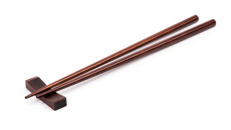 According to Kitchn, all you have to do is take one of your bowls or containers and rest two individual chopsticks (horizontally) on top of it. This will act as a base for another bowl or container to be placed on top. The distance between the two chopsticks is also important; if they're too far apart from each other, then they won't be able to hold the bottom of a bowl or container since it will most likely fall through.