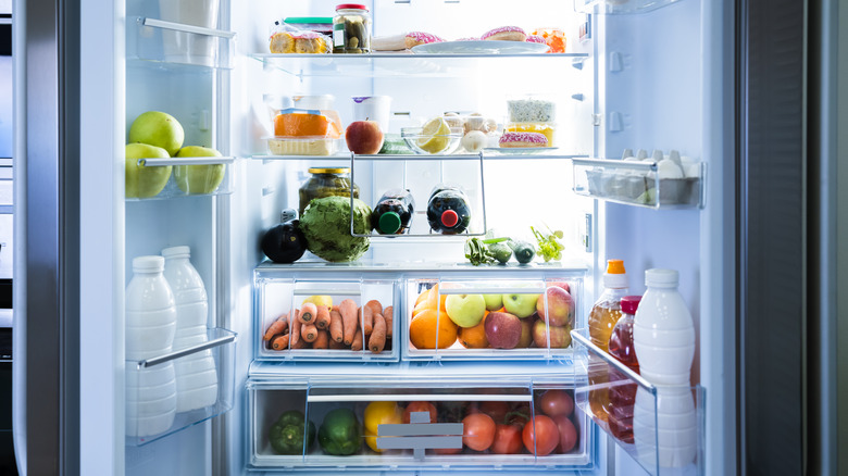 Luckily, there are many ways to keep a fridge more organized, and according to HGTV, one good place to start is with clear bins. Bins are a great way to group certain items, such as sauces, fruit, or seltzer water. When deciding where to place bins, or fridge items in general, consider where your fridge's warm and cool spots are.