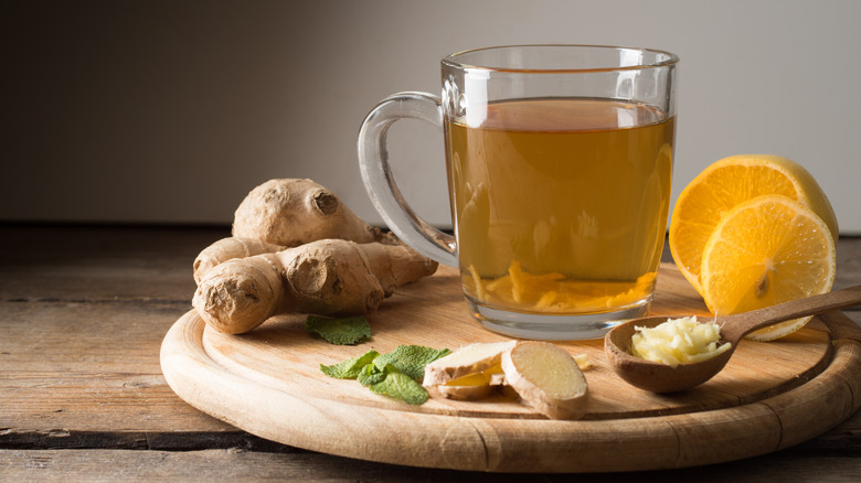One of the most popular ways ginger has been used throughout millennia is in tea, which itself has existed since ancient times and has become a huge aspect of many cultures throughout the world. Ginger tea in particular is widely enjoyed and can be drunk morning, noon, and night. This type of tea doesn't contain alcohol, caffeine, or practically any calories — and it can soothe your upset stomach or nausea (via Cookie and Kate). It's considered to be a healthier alternative to ginger ale, which usually has an excessive amount of sugars and additives while containing little actual ginger.