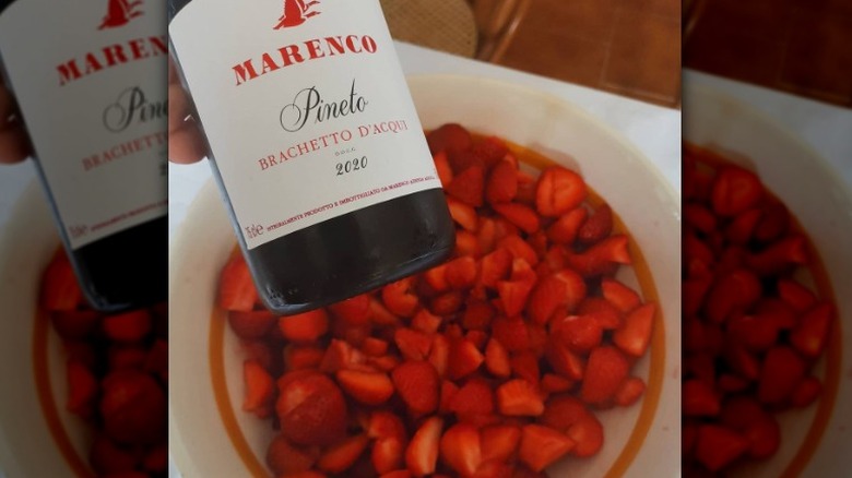 Brachetto d'Acqui is a sweet lightly sparkling wine made with brachetto grapes in the region of Acqui, Piedmont. The aromas of strawberries, roses, and spice are livened up with some acidity, making this a very pleasant sipper that is equally great paired with desserts or light snacks. With an alcohol content hovering around 5% to 6%, enjoying a glass of this ruby red wine with brunch won't set you back for the day. Pick up a bottle of Pineto Brachetto d'Acqui DOCG by Marenco for a stellar example of this fine wine.