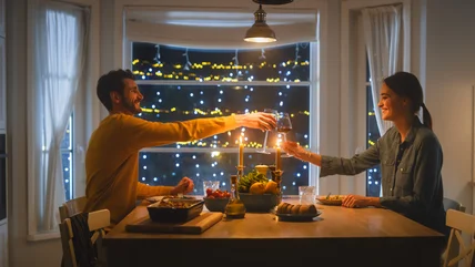 Nothing screams romance like flickering candlelight illuminating your significant other's face, shadows dancing along the walls as you enjoy a decadent meal. Sure, electricity is great, but dimming the overhead lights and setting up the atmosphere with candles is a foolproof romantic move. That being said, you might not want to bust out your best recipes based on the findings of a 2021 study published in Food Quality and Preference. According to researchers, diners tend to find flavors taste less intense when eating in a dimmer environment.
