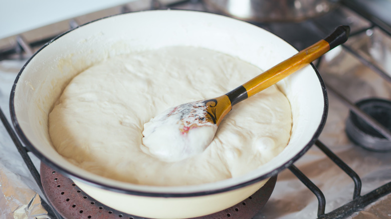 Besides the use of pureed potatoes in the recipe, they are made much like any other fried pastry! According to No Plate Like Home, the yeast-risen dessert is known for its dense structure. You must make a potato mash which is then mixed with the basic donut ingredients like sugar, flour, butter, and eggs with bloomed yeast, and the slightly-sticky dough is left to rise slowly overnight (at least eight hours) to cultivate flavor and texture. But the key to the perfect fasnacht isn't just the dough; it's how you cook it. Your frying lard (or whatever oil you choose to use) must be between 400 and 425 degrees Fahrenheit. Cook the fasnacht for two to four minutes on either side. When you remove it from the oil, be sure to sprinkle sugar on top while it's still hot!