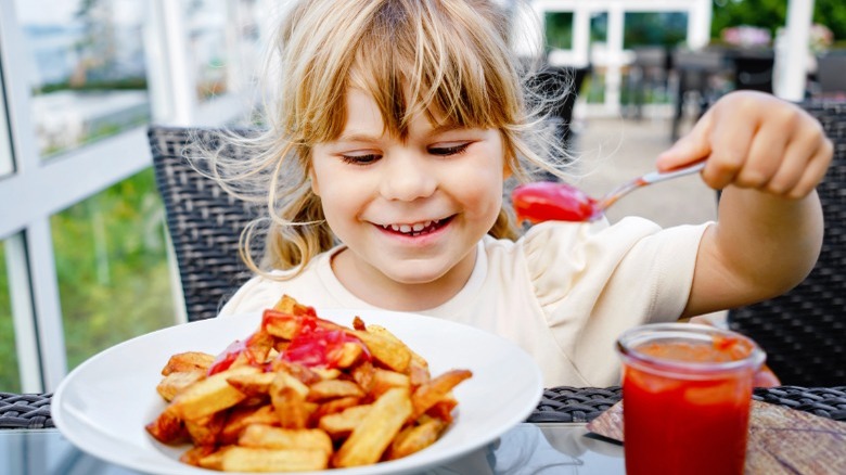 For most children, ketchup is the beloved go-to condiment. Why do they love it so much? For starters, it's sweet and packed with umami, both of which make other flavors more bright. Additionally, its bright red color is a visual cue that activates the brain's reward system, making it even more appealing. Another reason is a genetically predisposed sensitivity to bitter flavors, which are often found in vegetables, and which ketchup helps mask. Finally, ketchup is a reliable gastronomic companion in the universe of unknown foods children constantly get exposed to (via HowStuffWorks).
