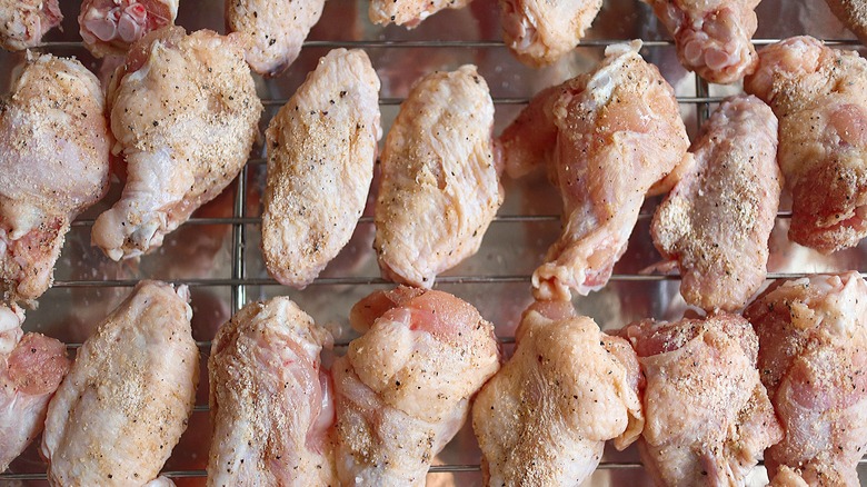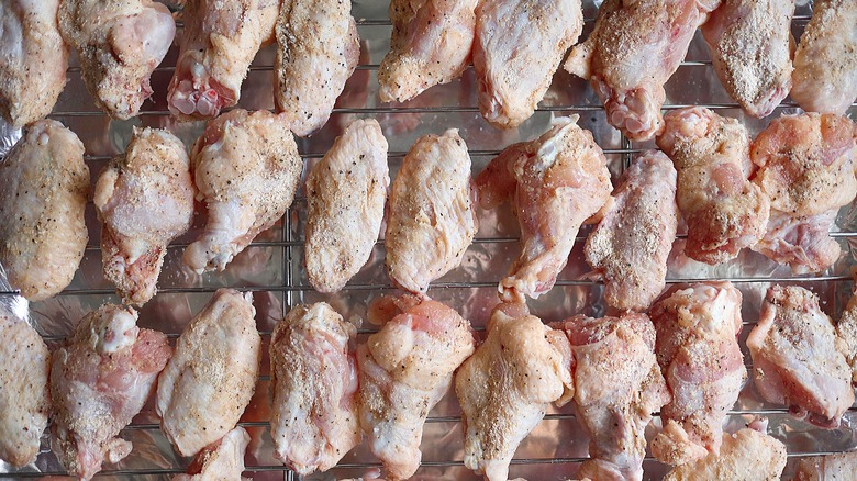 - Optionally place prepared wings on the bottom shelf of your refrigerator and refrigerate overnight. This will ensure crispy wings.