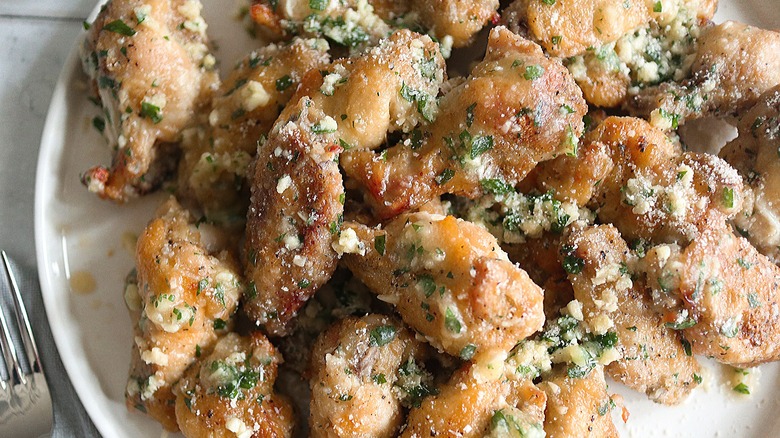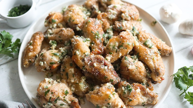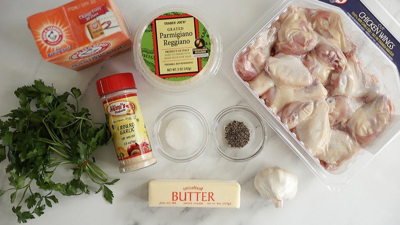 Unsurprisingly, the most important ingredient in this recipe is chicken wings, and you will need three pounds of them. In addition, you will need baking powder, kosher salt, garlic powder, black pepper, unsalted butter, minced garlic, chopped parsley, and grated Parmigiano Reggiano cheese.