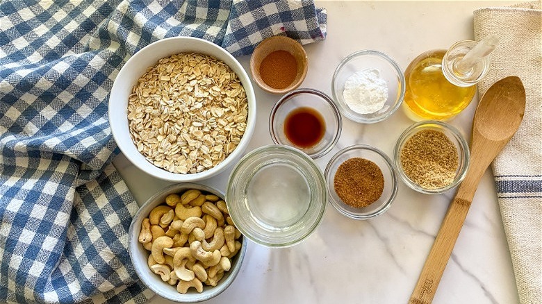 Gather the ingredients for cinnamon oatmeal pancakes