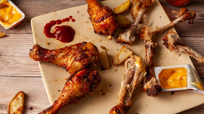 Poultry scraps, those little bits of meat, skin, and fat left on your cutting board, may not seem like valuable ingredients, but for those in the know, they contain a world of flavor. If you've spent any time perusing cooking advice online, you've probably been told to save bones and meat for making stock, so you know the potential leftover chicken has. Whether it's cold as a salad topping, or shredded for tacos, Kitchn notes that even a small amount of chicken meat can be stretched to add a pop of tasty protein to a meal. In fact, your leftover chicken salad can often end up being better than the original meal it came from.