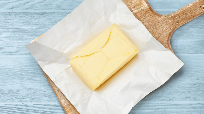 There are many ways to store butter. According to MasterClass, you can store butter at room temperature (provided it's salted), in the freezer, or the fridge. As most baking recipes call for unsalted butter, bakers will likely opt for storing any leftover butter in the fridge to increase its longevity. One must be careful, however, as partially used butter that is not wrapped properly has the potential to pick up undesired flavors during its time in the fridge.