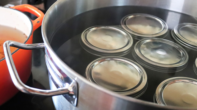 Look around your kitchen to see if you have a large enough pot to do the work. Often, a large stainless steel pot, such as one that you've used for big batches of sauce, could work well, shares Garden Betty. Be sure to choose something tall enough to ensure ample room for water to move all around the jars during the canning process.