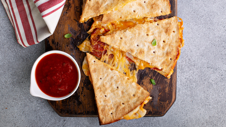 Fusion fare might seem like a fancy restaurant term, but it's culinary experimentation that is responsible for many popular combinations we tend to savor over. Take, for instance, sushi burritos, curry risotto, and bánh mì sandwiches (the latter is actually a blend of French and Southeast Asian influences), notes MasterClass. Another favorite you can add to the list is a fusion dish that's cheesy, tomatoey, and tastes just like a pizza: a pizzadilla.