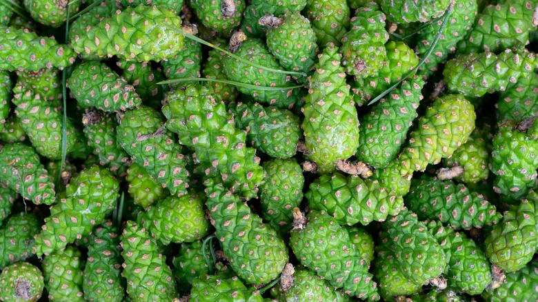 If you're looking to try them plain, MasterClass recommends you boil the green pine cones to soften them up before eating. Still, MasterClass notes that while young green pine cones are edible when made this way, they're also hard to digest. So, it's not dangerous to eat but can still cause some general discomfort.