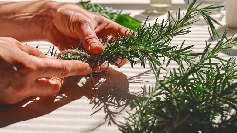 There are a few herbs that have flavor profiles that lend themselves well to sweet dishes to give them a savory, herbaceous note. You've probably seen a dessert plate garnished with a sprig of mint, but another herb that works well with sweet is rosemary. According to My Recipes, baking with rosemary adds a depth to the flavor that is unexpected and yet pleasing. They state that rosemary pairs nicely with desserts that feature lemons, sweet potatoes, peaches, plums, and even oranges, helping to balance the fruit's natural sweetness.