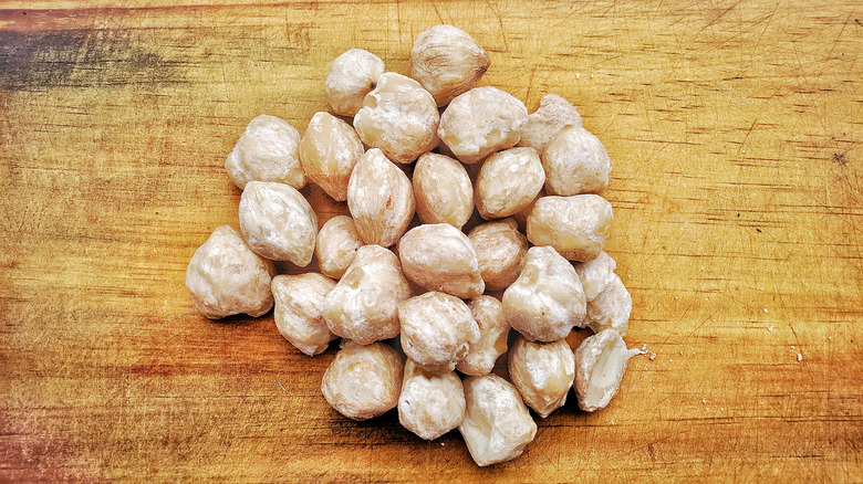 Candlenuts (aka kukui nut) are soft, oily seeds inside a hard-shelled nut, found in the tropical rainforests of Australia, Malaysia, and South Pacific islands (via Epicentre). They were named because the flammable oil content makes them burn like a candle – in Malaysia, for example, these nuts would be strung up and lit on trees or used for torches (per Culinary Lore). According to Serious Eats, they are used extensively in Indonesian cooking, pounded into a paste to thicken sauces and soups, and used as a binder for ingredients. The high oil content in ground candlenuts makes the gravy thicker in stews, and when added to the chili pastes in curries, it makes the food creamier as well (via Nyonya Cooking). Although its taste is somewhat like almonds, it is more bitter and intense and can overpower soups and other foods, so should be used in smaller amounts (according to Serious Eats). Serious Eats also warns that candlenuts are toxic if consumed raw, and must be roasted or pan-fried to release the toxicity, however, if mixed with herbs and spices, they make a savory paste that can be added to soups. Candlenuts are mostly available at Asian groceries or online.