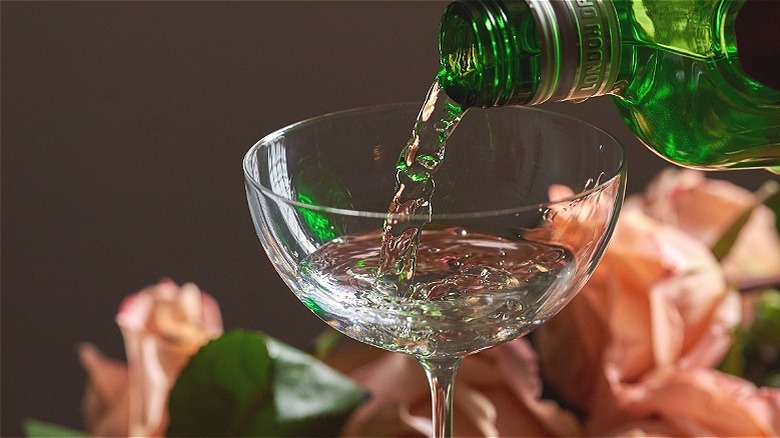 The secret to this pretty riff is the rose water, which delicately scents the drink with floral aroma (and taste, if you love rose). Because this cocktail is easily built in-glass, it's written for making one at a time, but can be duplicated again to share with your special someone over charcuterie or after-dinner dessert. To pronounce the effect of the long-stem rose, find a glass with a long, thin stem — we love a tall glass coupe — and garnish with small flowers or a mint leaf. Read on below for our suggestions on the best gin to use and how to rinse the glass for a subtle rose aroma (because that's one way to impress a date, right?).