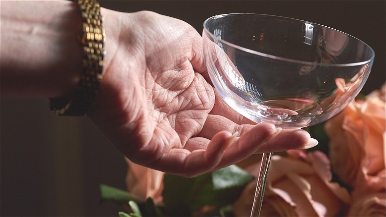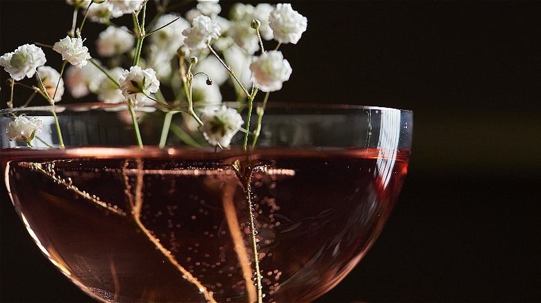We might be jumping to conclusions here, but if you're someone who likes rose-flavored cocktails, you might be someone who loves a bouquet of flowers, too. For a special garnish, pull some of the filler flowers like baby's breath, eucalyptus, or feverfew daisies out of your bouquet (you only need a stem or two, don't worry) and place them gently onto the drink. The bubbles will keep them afloat long enough to serve them to your date with flair. Don't like putting flowers into your drink? Garnish with a fresh raspberry and sprig of mint instead. That way, you also get a pop of mint flavor.