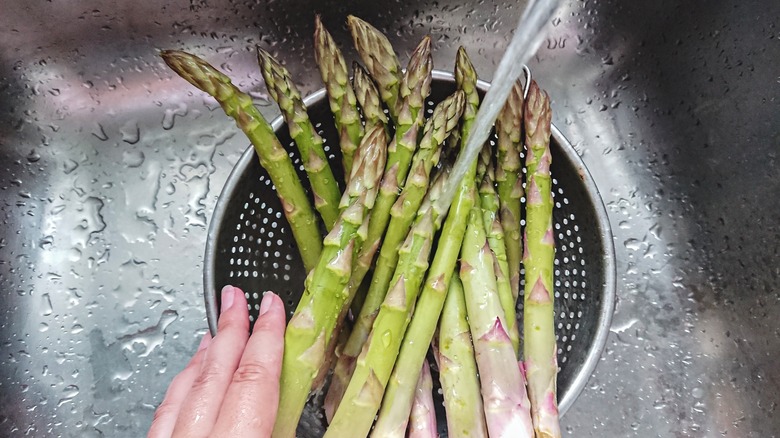The vegetables to avoid throwing into your disposal include "celery, pumpkin, lettuce, kale, artichokes, and asparagus." However, if you do absentmindedly toss a few asparagus ends or lettuce leaves down the drain, and the unit ends up jamming, you can most likely fix it. American Home Shield suggests (once you've ensured the power is off) using a flashlight to identify the problem and using a tool, such as pliers, to remove the stringy pieces. And attempt to free all the bits of veg before turning it on again.