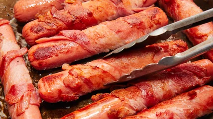 Don't let the namesake fool you. Believe it or not, the Texas Tommy hot dog was actually created in Pottstown, PA. Per local news outlet PhillyBite, the Texas Tommy is a hot dog wrapped in bacon, topped with ketchup, mustard, and a slice of American cheese, and served on a toasted bun. The hot dog gained popularity during the 1950s, but it might have been invented during the 1940s, depending on who you ask. According to the outlet, it might also include pepper jack cheese, but the specifics are up for debate. In this Texas Tommy version by Betty Crocker, the hot dogs are slit open lengthwise and stuffed with small pieces of cheese for a melty inside. There's even a Texas Tommy "Hitched" variation, in which the already-loaded dog is topped with a heaping spoonful of macaroni and cheese.