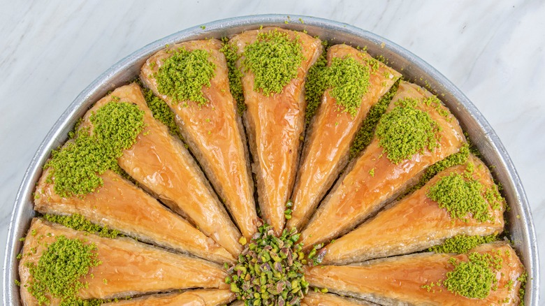 Pistachio is arguably one of the most attractive nuts, with its startling green flesh and earthy flavor, and Turkey is one of its largest producers. With groves upon groves of trees throughout much of the country, few regions are better renowned for their produce than the Turkish city of Gaziantep. The Khoshbin Group states that in 2018, Gaziantep hosted 22 million pistachio trees alone! And with all that pistachio comes a lot of power to make baklava.