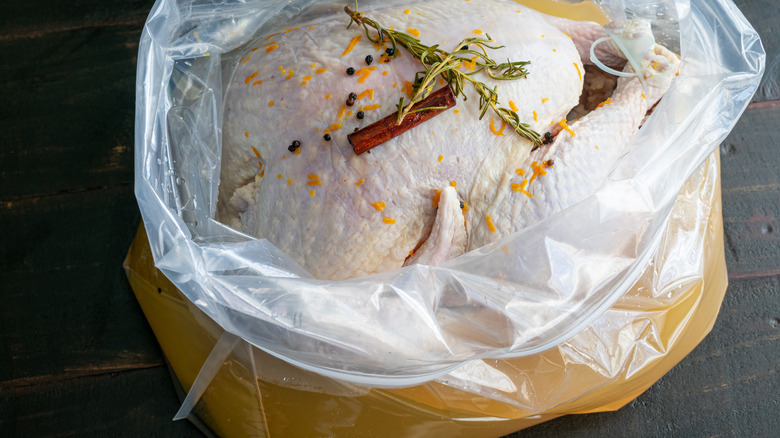 We might not have known about brining before it was introduced as a way to save our Thanksgiving turkeys, but the practice has actually been around for thousands of years, when it was used to preserve meat and seafood, per Food Network. Even today, when refrigeration is common, chef Kelley Heldt advises that a basic salt and cold water solution can still be used to get rid of any germs that sit on the surface of any cuts of meat or seafood (via LinkedIn).