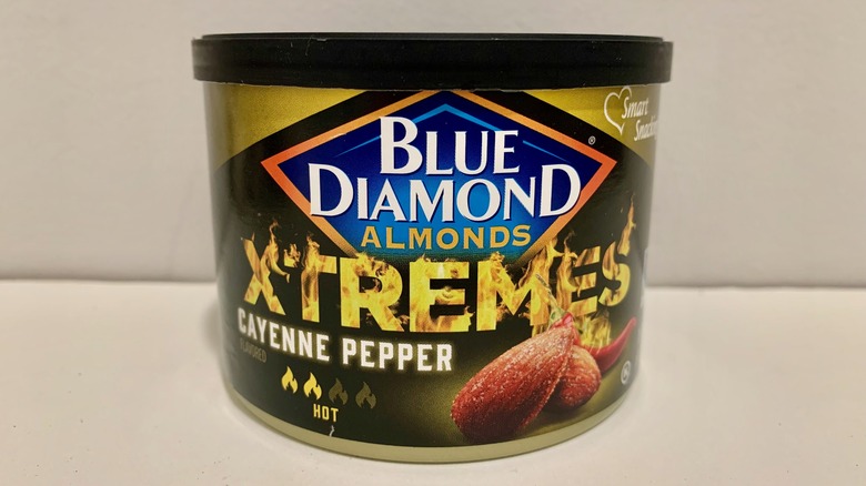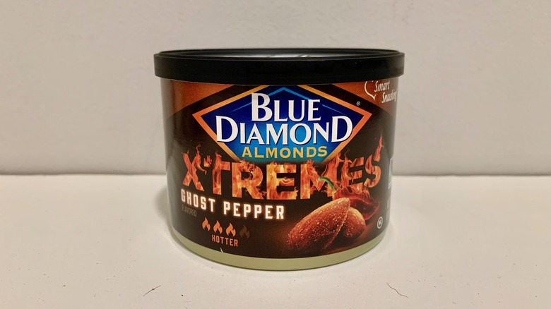 These Xtremes Ghost Pepper Almonds get three out of four flames on the company website, and the label of "hotter" (between "hot" and "hottest"). Spice levels are absurdly subjective, but even so, we thought they earned their penultimate hotness. Each can of Xtremes Almonds gets a lid saying "Warning: This snack kicks back," which is something we appreciate. If someone who absolutely hates spice, or God forbid a small child, accidentally shoved a handful in their mouth, well, it could be a disaster.