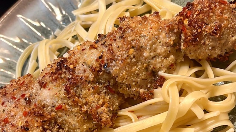 His recipe consisted of marinating chicken in olive oil, garlic, basil, and breadcrumbs for three to six hours. The tenders were rolled up, skewered, coated in more breadcrumbs, broiled, and served with a sauce (via Kansas City Magazine). However, it doesn't stop there — you can even enjoy it in various ways along with pasta, according to the restaurant's website.