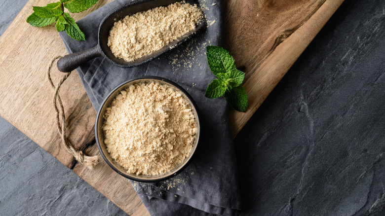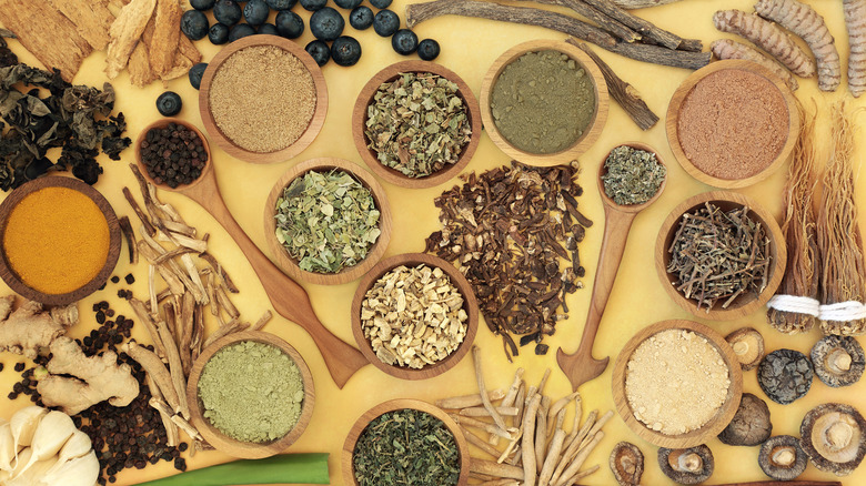 Ginseng, known to fight fatigue, has American and Asian varieties (via Cleveland Clinic). American ginseng may help with your immune system, stress response, and mood regulation. Asian ginseng may help combat physical and mental lethargy. Ashwagandha may help you relax and aid with depression. Rhodiola is also a popular adaptogen with potential effects on fatigue and depression. Tulsi, or holy basil, is touted for helping with focus and anxiety.