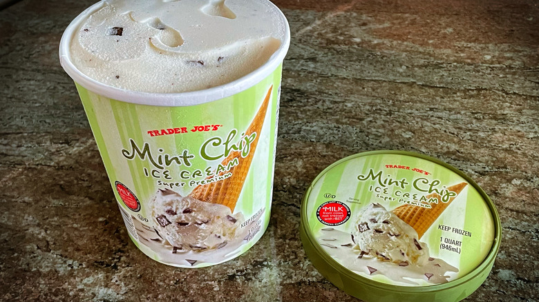 Trader Joe's Mint Chip Ice Cream is considered a "super premium ice cream". This means that it has less air than many other ice creams, resulting in a dense and decadent dessert. Along with less air, the product contains only simple ingredients: milk, sugar, egg yolks, peppermint extract, and chocolate chips. There are no artificial colorings, such as green dye, which are commonly used in other mint ice creams.